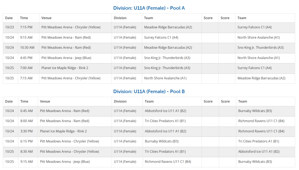 We are proud to announce the first-ever U11 Showdown Female Minor Hockey Tournament being held in Pitt Meadows and Maple Ridge, BC. This exciting tournament promises fast-paced action, sportsmanship, and unforgettable moments for both players and spectators.